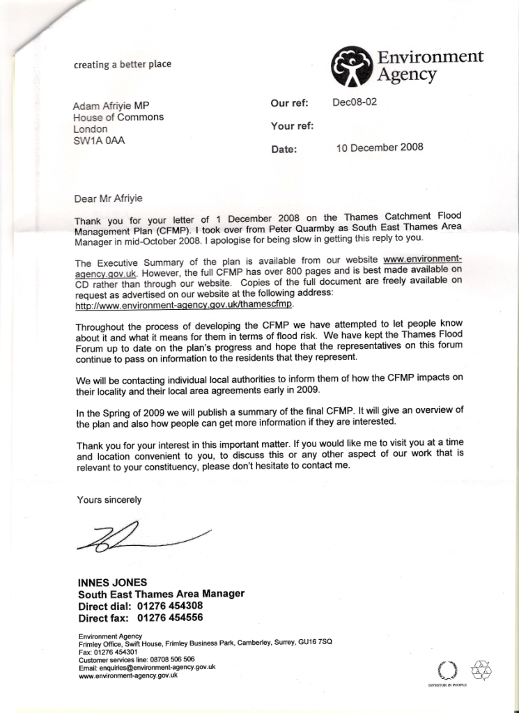to Adam Afriyie MP about the Thames CFMP