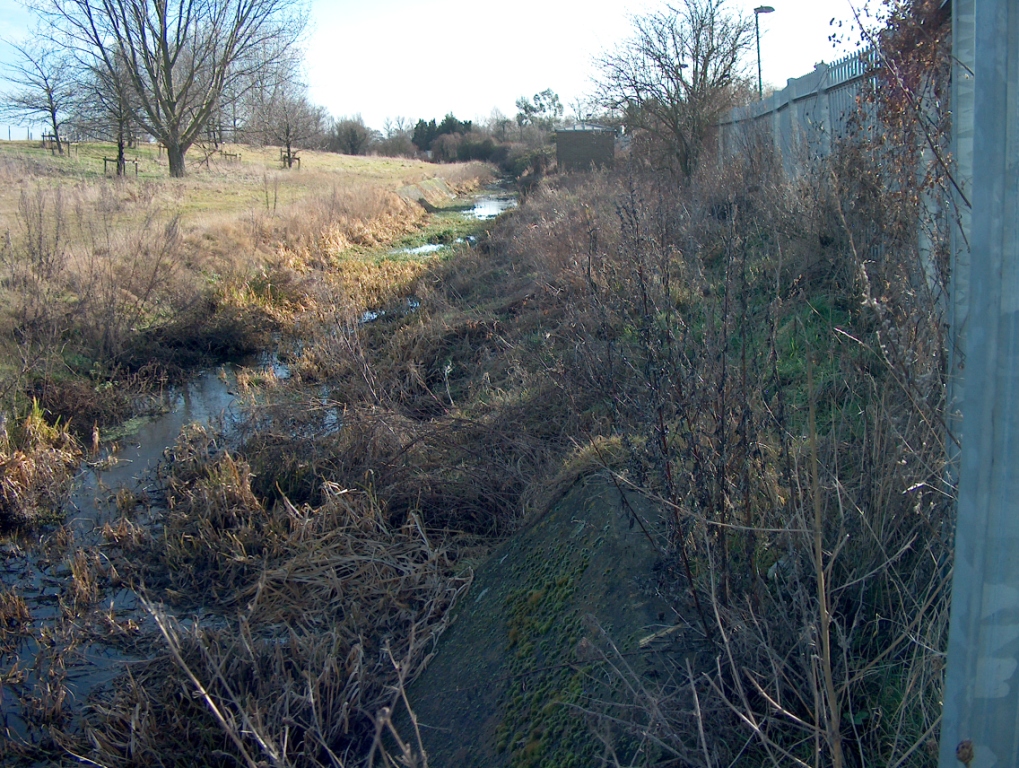 View upstream - Datchet Common Brook, Horton Road, Datchet (owned by Thames Water) - 21/1/2009