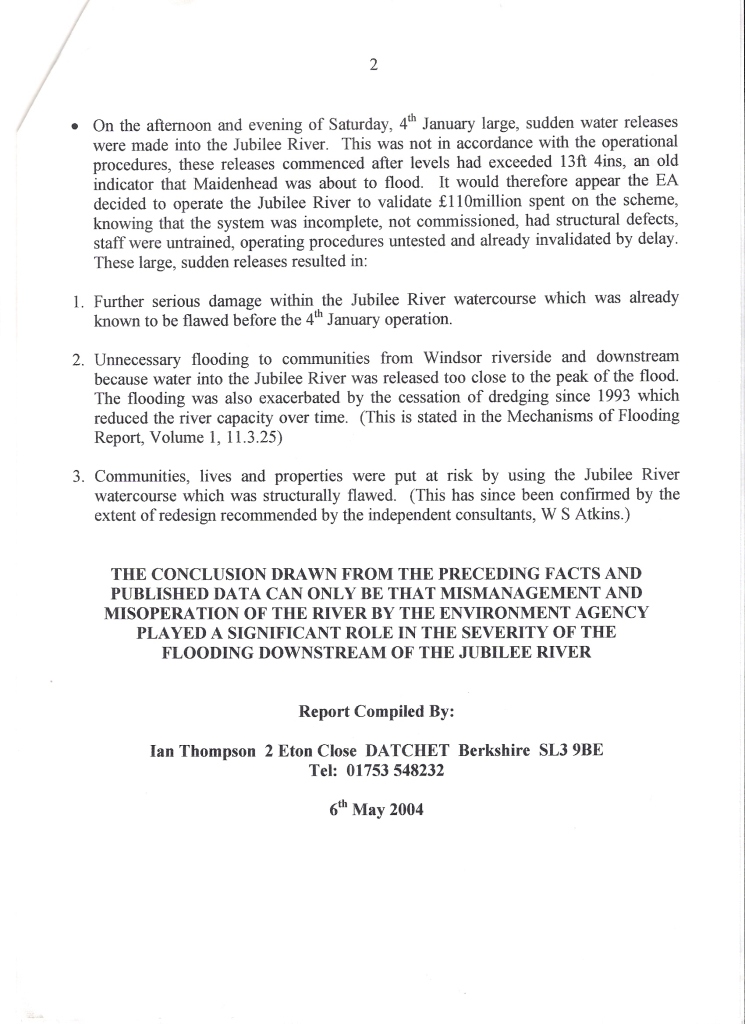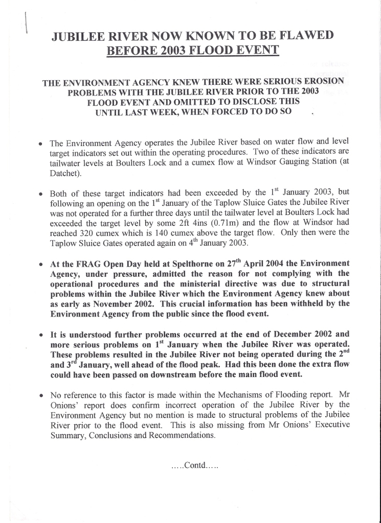 The Jubilee River story - Jubilee River known to be flawed before 2003 flood event.