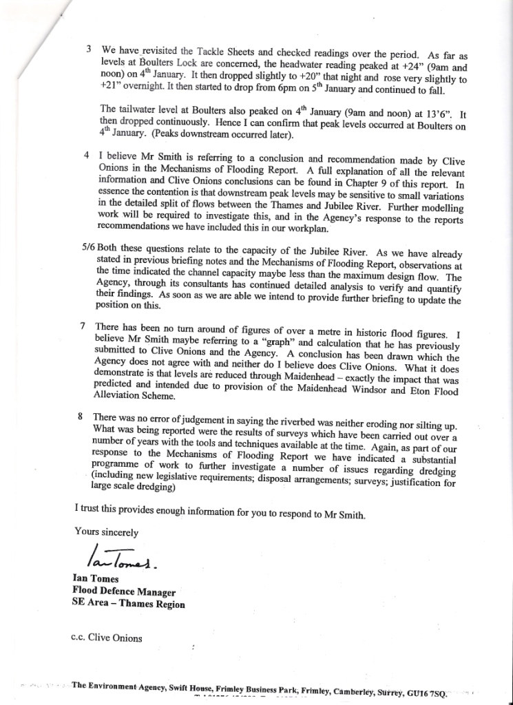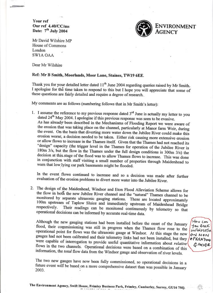 The Jubilee River story - EA letter to B Smith via Wilshire - July 2004