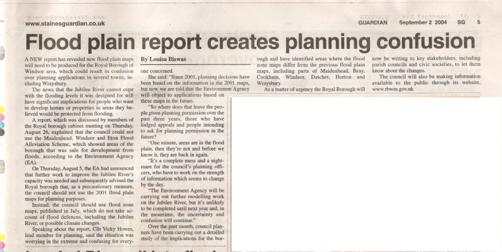 The Jubilee River story - Flood plain report creates confusion (Sept 2004)
