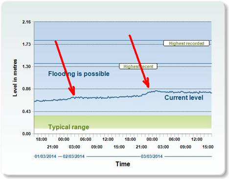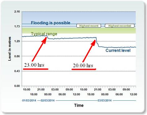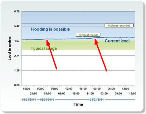 River level gauging and hydrographs - The EA on-line river level system has a number of shortcomings including the unreliability of the gauges. The variation in datum and range between adjacent gauge hydrographs leaves the information open to misinterpretation. In particular the precise numerical data is only available for one hour before being transferred to the chart.