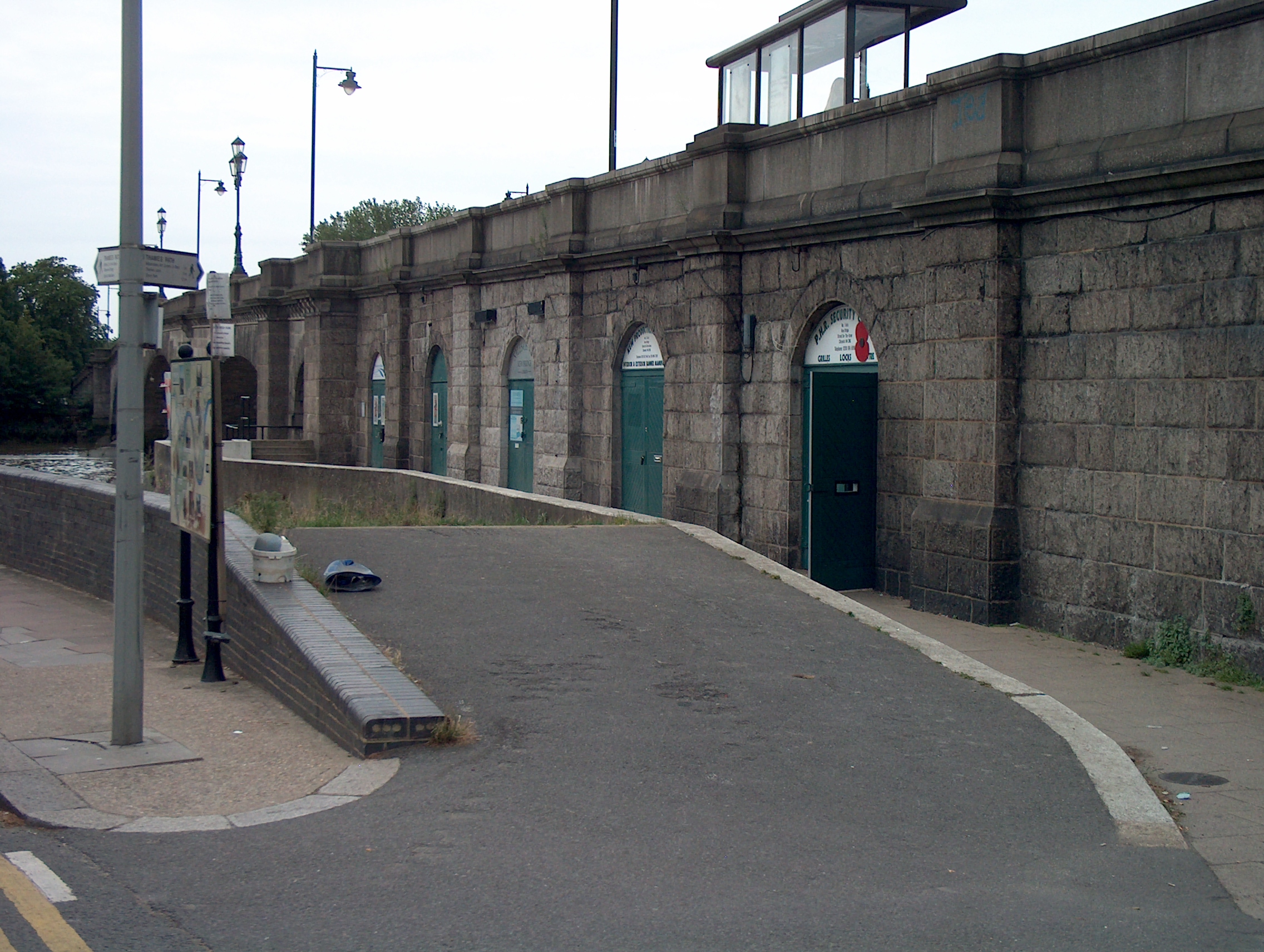 Can you see what's happened here? First the flood arches are used as workshops - then a flood wall is built to stop them flooding!