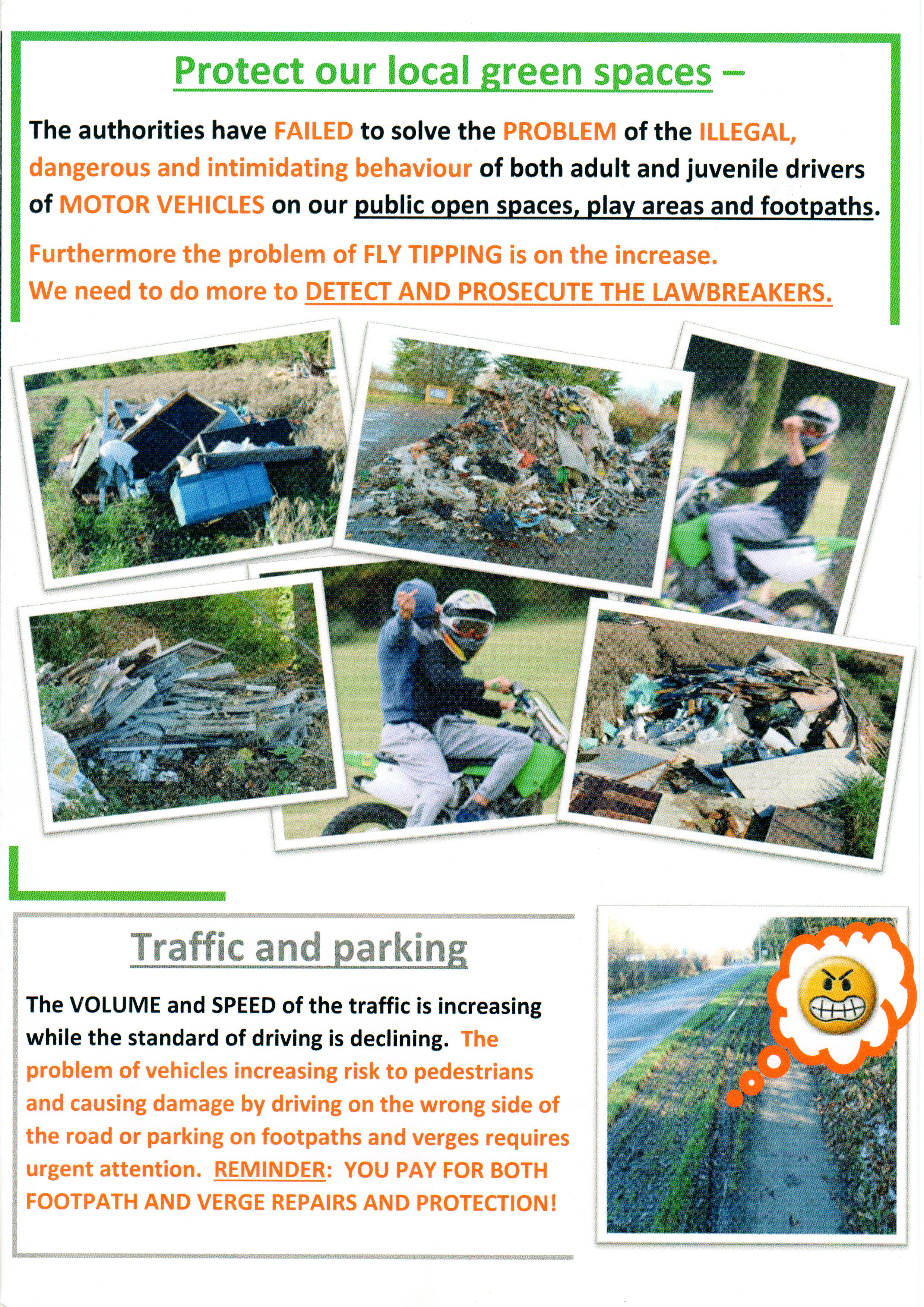 Ø Ever increasing volumes of speeding traffic, pollution, fly-tipping and vandalism