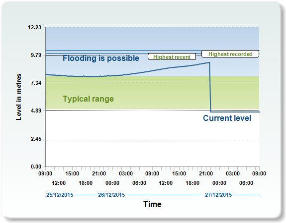 The highest river level recorded at this location is 10.20 metres and the river level reached 9.95 metres on 27/09/2012.