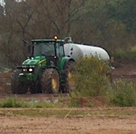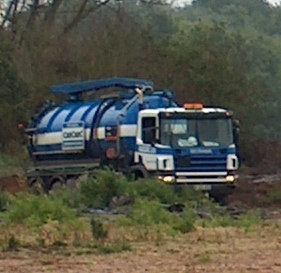 Image HPIM4408 records four vehicles working around a slurry lagoon.