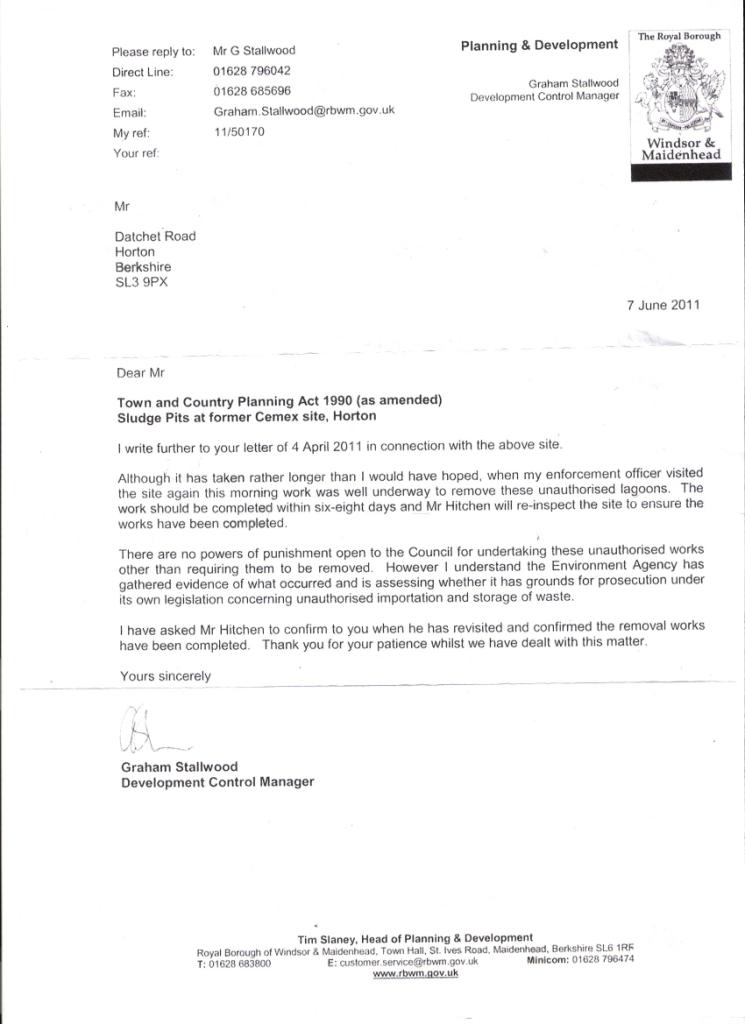 The scan below is of a letter dated 7 June 2011 received from RBWM by a Horton resident.