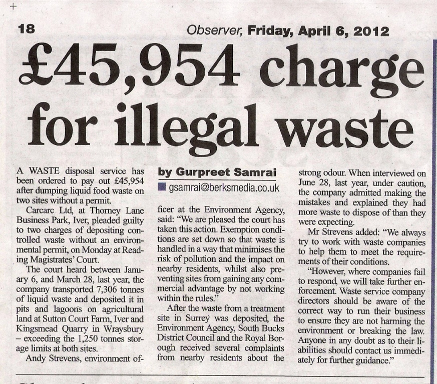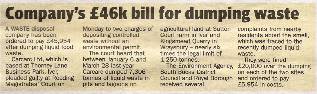 Kingsmead Quarry - Court Case - £46,000 fine for illegal waste