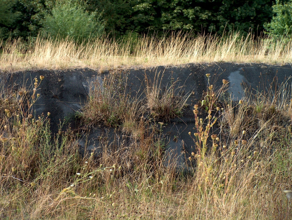 The 4,000 sq metres of specially grown turf protection is disappearing fast thus leaving the black geo-textile material reinforcement exposed to both mechanical and solar damage. In my opinion it is only a matter of time before the geo-textile reinforcement fails to fulfil its purpose.